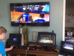 TDE slows down for the holidays, and this secular holiday is one of the holiday-ist of all. The first Thursday and Friday of the NCAA Tournament are my two favorite sports days of the year. This pic shows Max getting the screens set up for Thursday night's action.