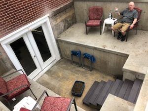 I'm so stoked, I might celebrate with a few drinks tonight, especially now that I have a social distancing meeting place. It's the picture above. We installed a walk-out basement, then added narrow "patios" on each side, resulting in two areas about seven feet away from each other. One couple can sit on one side, another on the other. They couldn't close talk if they wanted to, yet there is still the "intimacy" since you're enclosed in an open-air setting together. Unfortunately, the weather forecast is terrible, so we won't try it out tonight.