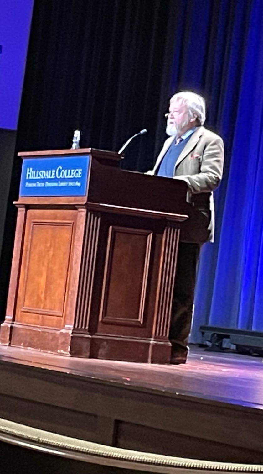 I attended Iain McGilchrist's lecture at the Plaster Auditorium at Hillsdale College.